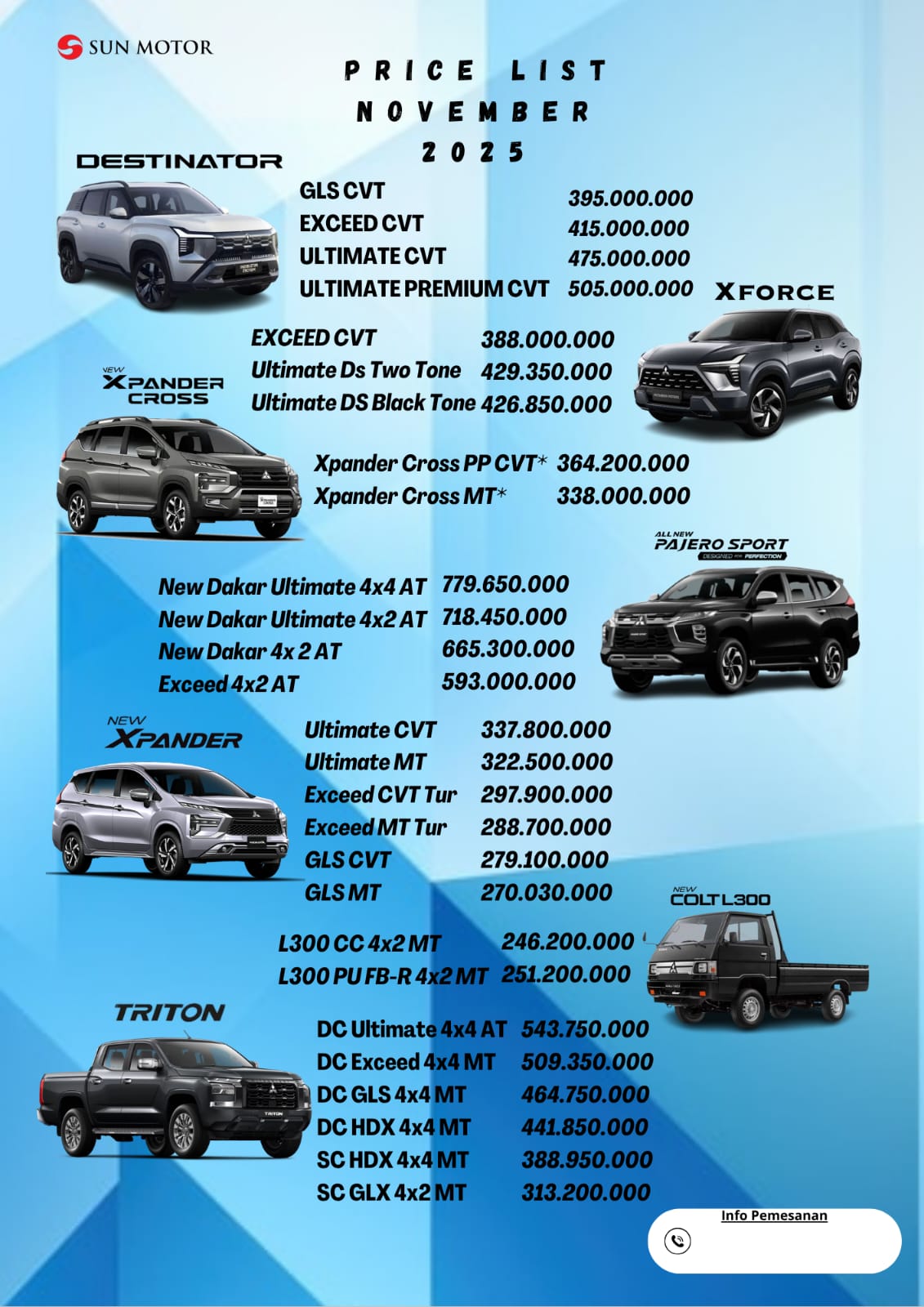 Dapatkan ulasan, spesifikasi dan harga terbaru dari setiap produk Mitsubishi untuk wilayah Cikarang dan sekitarnya. Meliputi Mitsubishi Colt L300, New Xpander Cross, New Pajero Sport, Xpander, dan Triton.